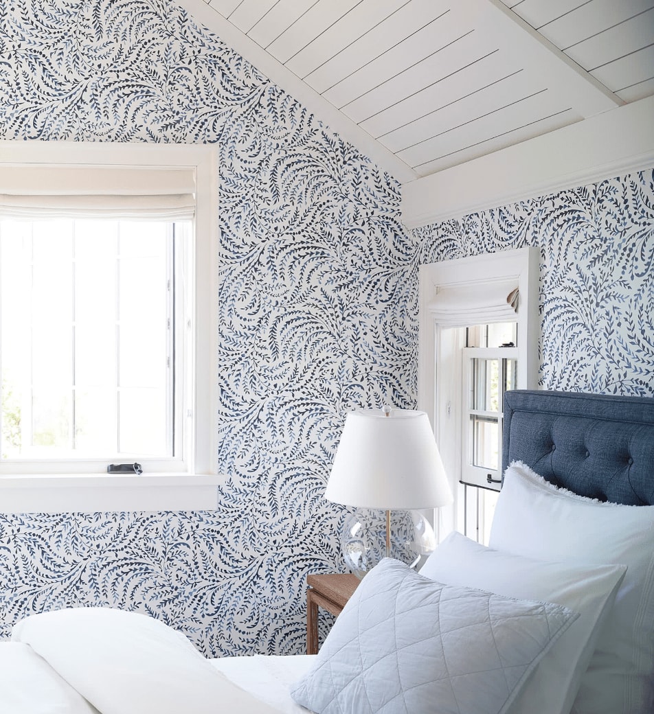 At $128/roll, it covers 60.75 square feet and comes in Navy, Sky, Pink Sand, Mink & Grove