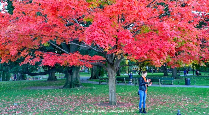 Boston's fall foliage blazes across the city from late September through October - and often well into November.