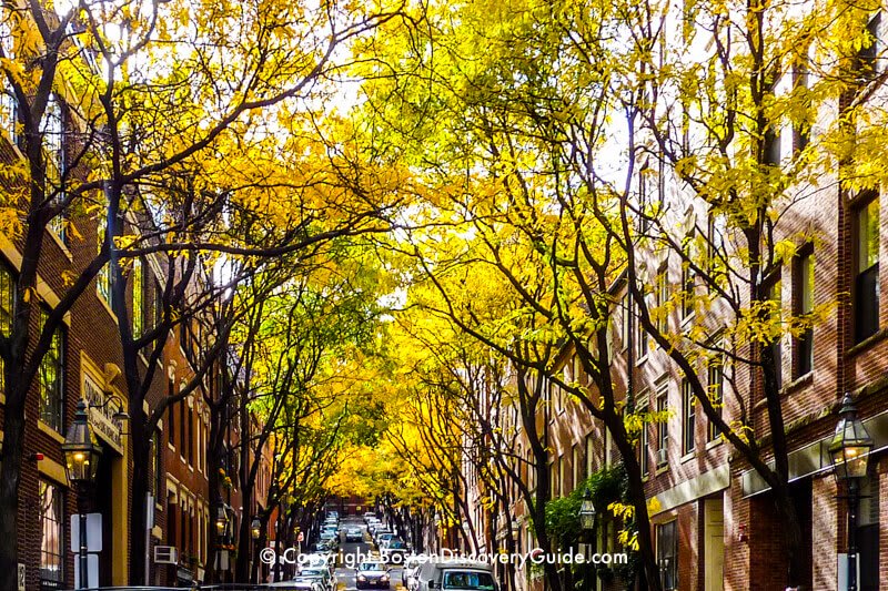 Leafy neighborhoods in central Boston provide great vistas for viewing colorful Boston fall foliage.
