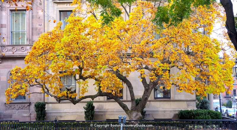 Particularly brilliant trees can be found throughout Bay Village, Back Bay, and the South End.