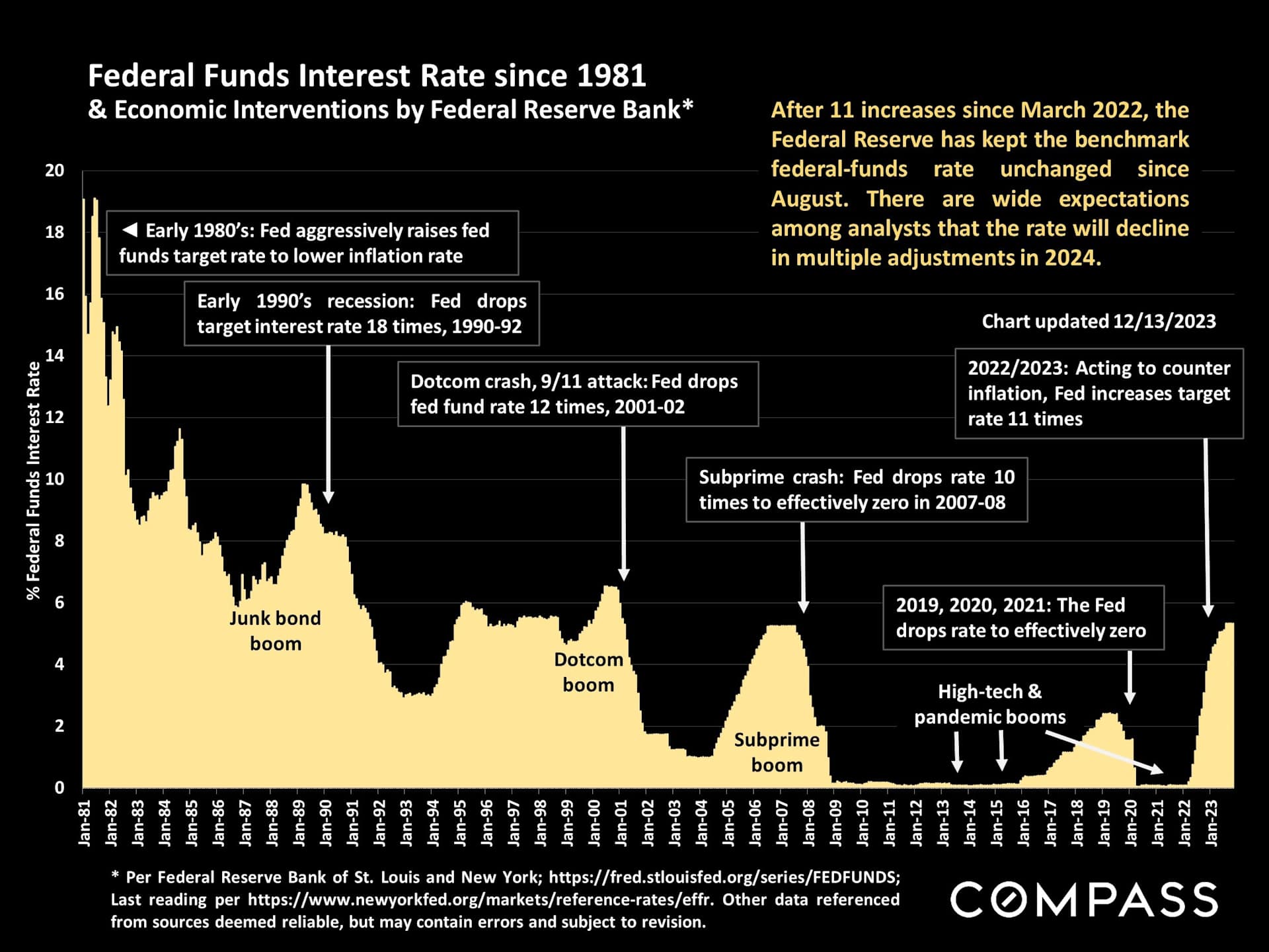 In 2023, the Fed was acting to counter inflation by increasing the target rate, which they did 11 times. Now that the rate has been unchanged since August, there is a consensus that the Fed will soon begin to drop its benchmark rate, and once determined what that benchmark rate will be, the Fed will act quickly to enact it.