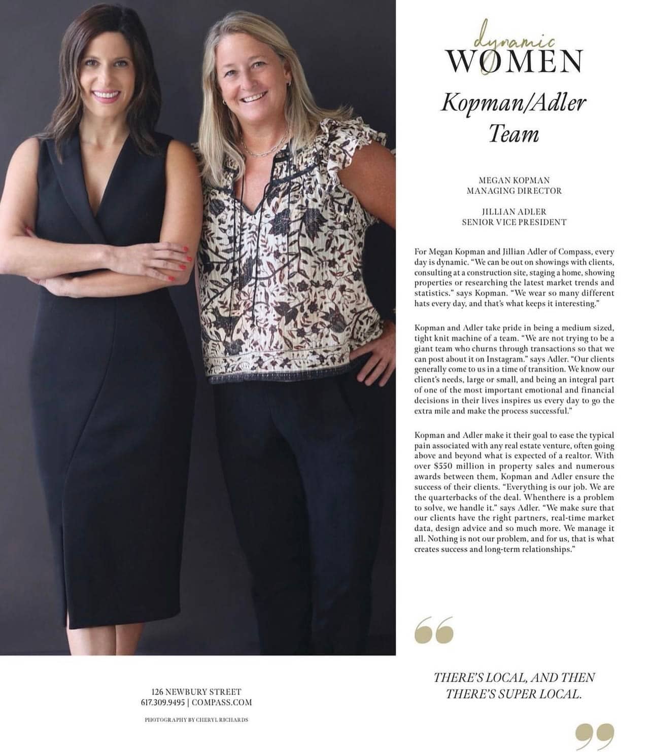 Megan & Jillian were featured in the Dynamic Women section of the Modern Luxury Spotlight issue of 2022, for their unmatched level of client service & dedication to each of their clients. Their dynamic practice has them wearing multiple different hats at all times, to fit their clients needs. “We can be out on showings with clients, consulting at a construction site, staging a home, showing properties or researching the latest market trends and statistics,” says Megan. Every single day for them is different, and that’s what keeps it interesting day in & day out.
